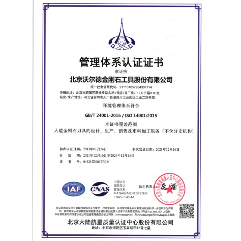 2015年2月,北京沃爾德完成股份制改造,正式更名為北京沃爾德金剛石工具股份有限公司。