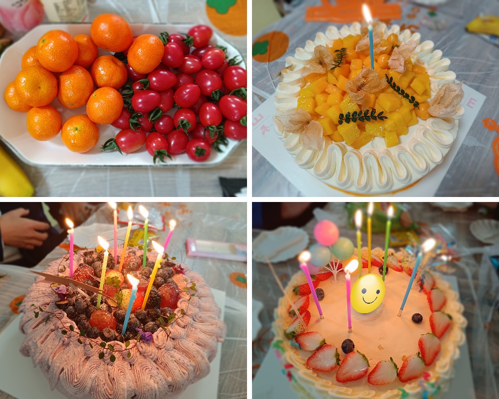 精心布置的場地,整齊擺放的禮物,各種可口的美食,讓壽星們對生日會充滿了期待。