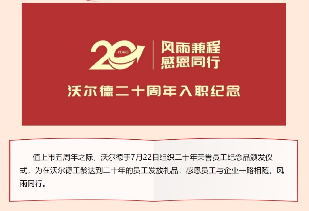 感恩同行 | 2024年度沃爾德二十年榮譽員工紀念品頒發(fā)儀式圓滿落幕