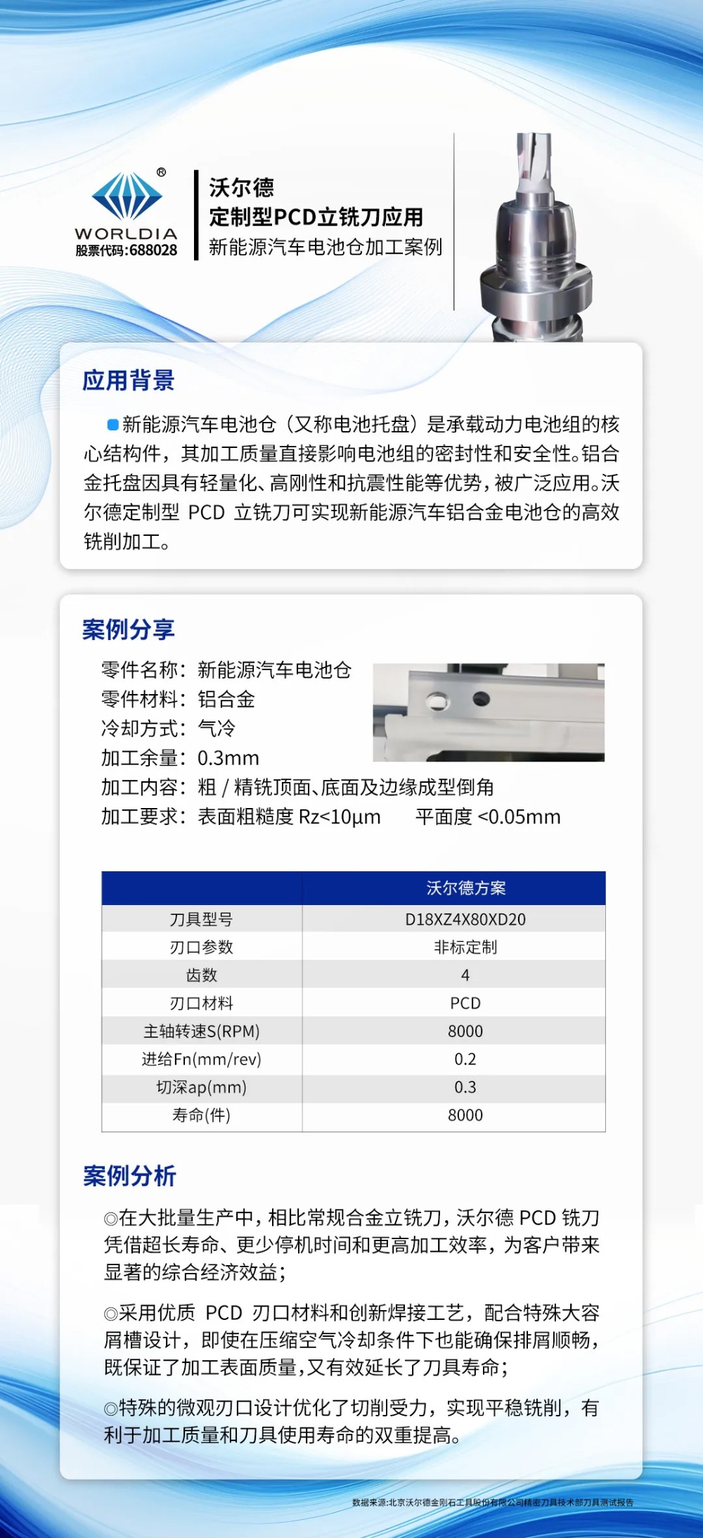 沃爾德定制型PCD立銑刀應(yīng)用案例-新能源汽車電池倉加工